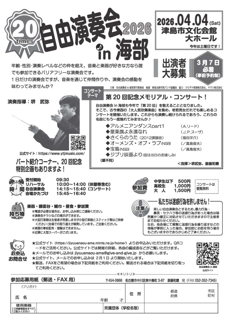 楽譜の用意の都合上必ず事前にお申し込みの上ご参加ください。